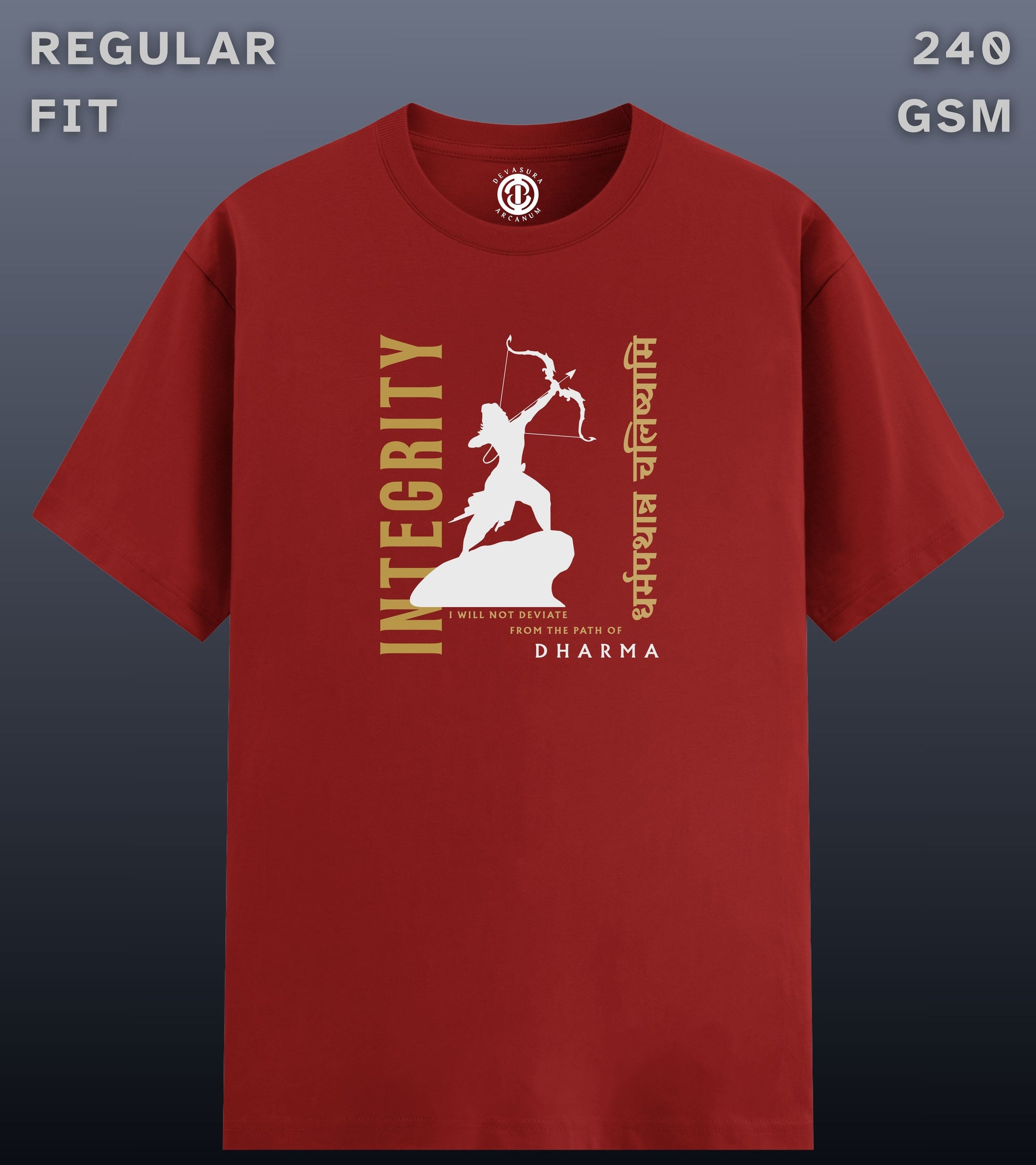 This design draws from Shri Rama’s unwavering declaration that he will not stray from the path of dharma, regardless of personal loss or injustice. It represents moral steadiness without rigidity, and principle without ego.